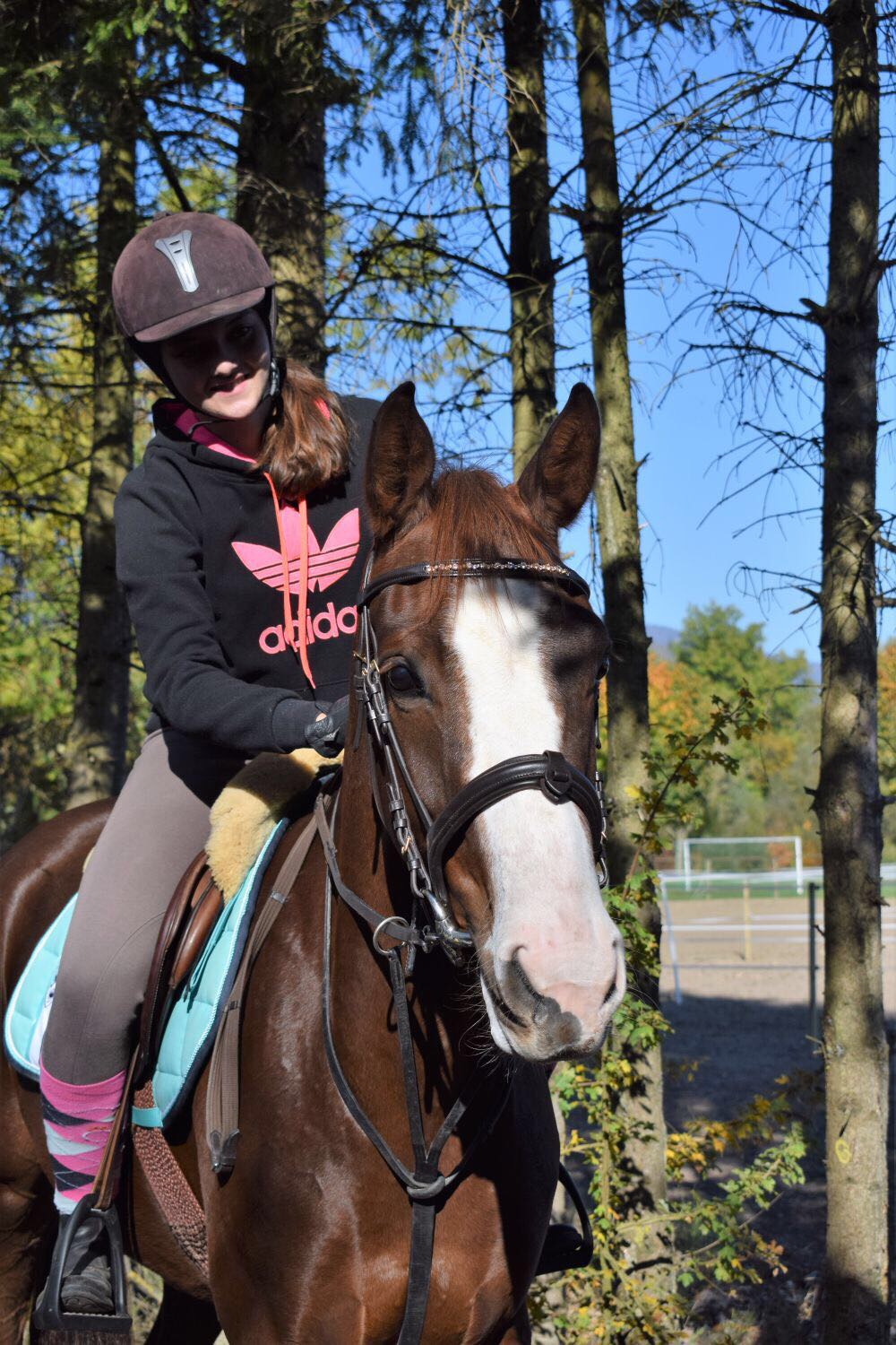 Gestartet hat meine Leidenschaft zum Pferdesport mit 8-jährig auf dem Ponyhof Bätterkinden. Es war nebst der Leichtathletik meine absolute Lieblingsbeschäftigung, im Stall zu helfen und Reitstunden zu nehmen. Ich habe schon damals immer die etwas schwierigen Ponys bevorzugt. Die Arbeit mit ihnen ist eine Herausforderung, die weit über das blosse Reiten hinausgeht. Sie erfordert Geduld, Verständnis und die Fähigkeit, über die gewohnten Grenzen hinauszublicken. Man lernt die kleinen Fortschritte zu feiern und sich von Rückschlägen nicht entmutigen zu lassen. Die Kombination aus Kraft, Sturheit, Sensibilität und Schönheit finde ich wirklich beeindruckend. Auch ihre Schnelligkeit hat mich von Anfang an gefesselt. Pferde sind Bewegungstiere, das spürt man in jeder Faser ihres Körpers. Ich liebe es durch Felder und Wälder zu galoppieren. Es ist wie eine Flucht aus dem Alltag. Nebst Dressur- und Springstunden in Bätterkinden, habe ich mich auch sehr mit Jungpferdetraining, Geitnertraining, Bodenarbeit und biomechanisch korrektes Reiten auseinander gesetzt.